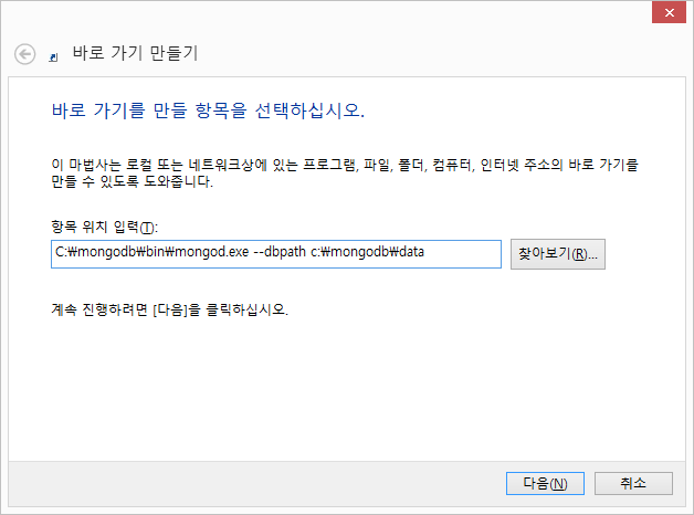 몽고DB 서버가동 바로가기exe 만들기