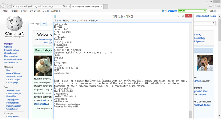 아래 예제는 실행하면 (1)인터넷 익스플로러를 켜서 (2)전체를 복사하고 (3)해당내용을 메모장으로 자동으로 옮겨 붙이는 작업을 수행한다. 단점은 속도가 느리다.