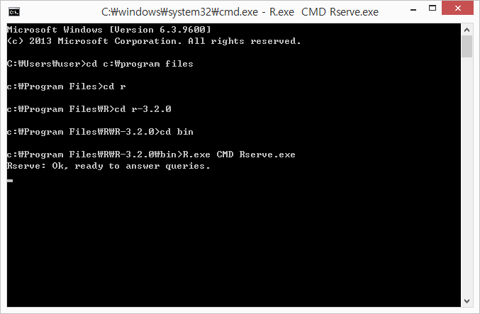 cmd 에서 cd c:\program files\r\r-3.2.0\bin 으로 들어가서,