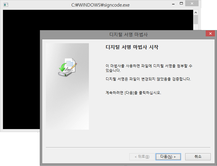 1. 시작 – 실행 – signcode.exe 실행해서 하라는대로 진행하면 된다.