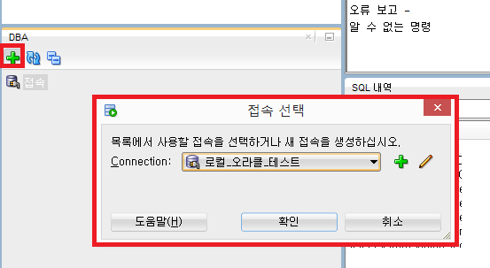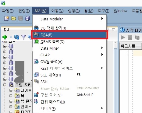 1. 보기 – DBA 를 선택해서 DBA 탭을 활성화 시킨다.