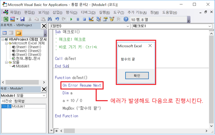 이상 VBA On Error 구문의 사용이었다.