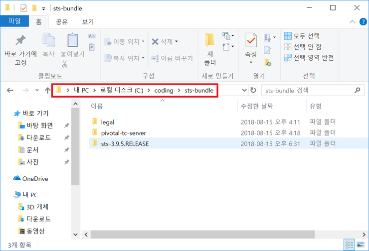 zip파일의 압축을 풀어서 C:\coding\sts-bundle 폴더에 위치시켰다.