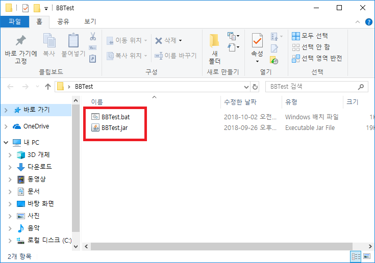 예를 들어 아래와 같이 start java -jar ./BBTest.jar 라고 입력한다.