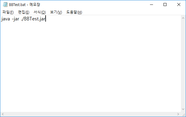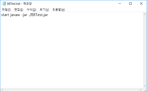 예를 들어 아래와 같이 start javaw -jar ./BBTest.jar 라고 입력한다.
