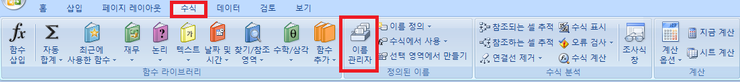 1. 엑셀 상단 메뉴의 [수식] – [이름 관리자] 를 클릭한다.