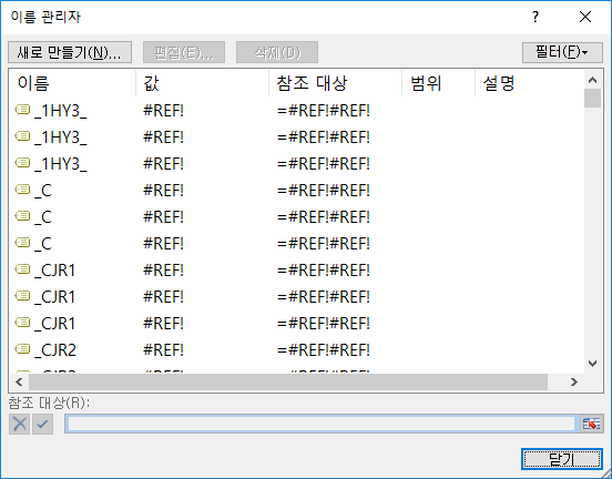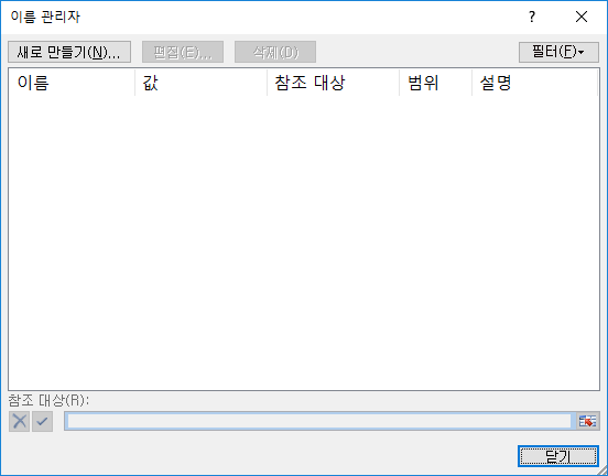 2. 아래와 같이 [이름 관리자] 창이 나타날 것이다.