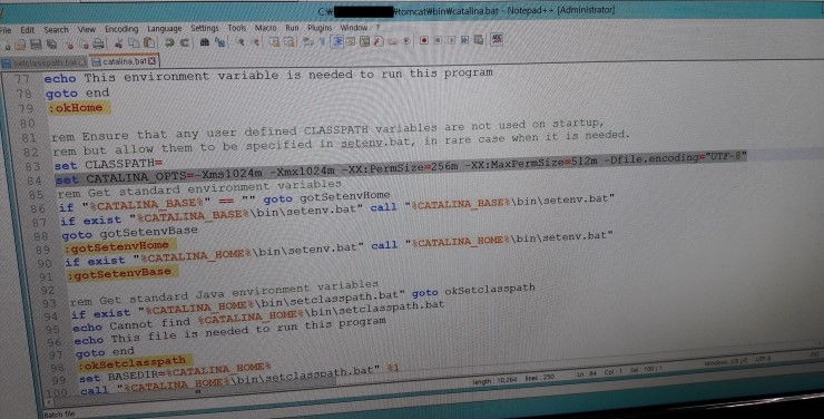 이번은 윈도우 서버여서 catalina.bat 을 수정하였는데, 리눅스라면 톰캣폴더/bin/catalina.sh 파일을 수정하면 된다.