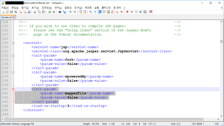 한 편 톰캣에 설정한 mappedfile의 의미는, mappedfile 이 true 일 경우 톰캣 컨테이너가 HTML 코드(jsp 를 컴파일한 결과 코드)를 라인 수 만큼의 out.write 로 출력한다고 한다.