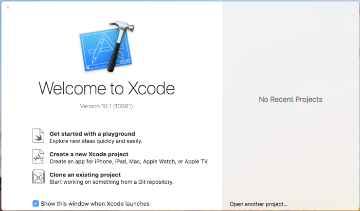운영체제 버전에 맞춰, Xcode 를 10.1 버전으로 구하기로 했다.