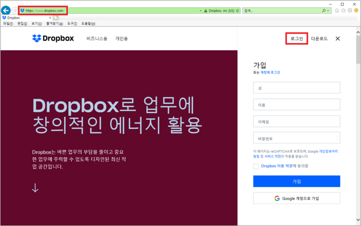 1. https://www.dropbox.com/ 접속