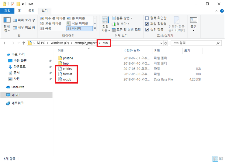 본 포스트에서는 C:\example_project\.svn 이라고 가정한다.