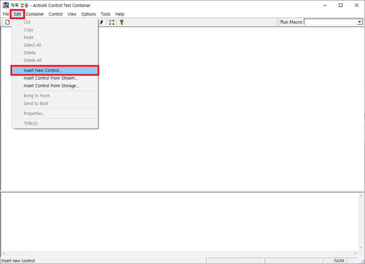 상단메뉴의 [Edit] – [Insert New Control…] 을 클릭한다.