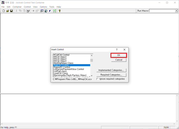(모든 ActiveX 공통사항은 아니고, 한글 컨트롤만 해당사항임)