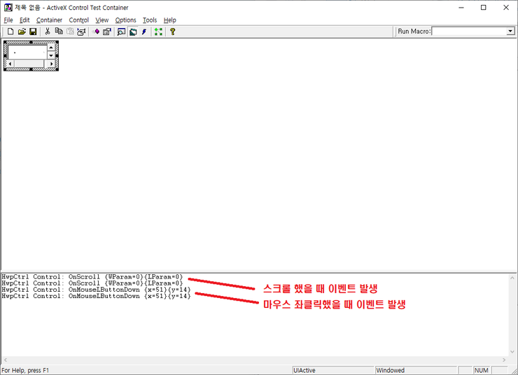 예로 든 한글 컨트롤의 경우, 컨트롤 내에서 스크롤을 하면 OnScroll 이벤트를 호출하고,