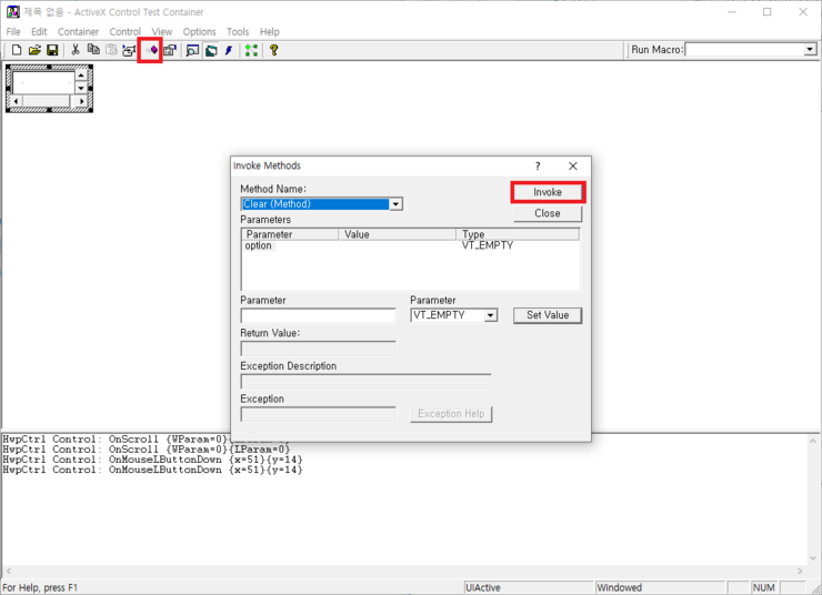 ActiveX (OCX 파일) 내의 메서드를 테스트해볼 수 있다.