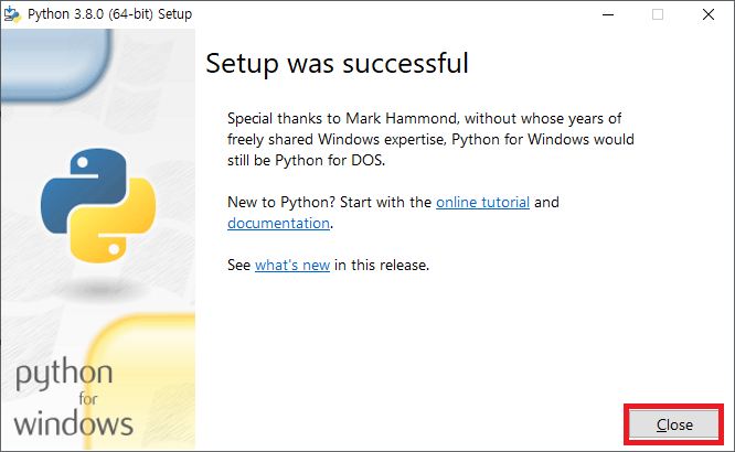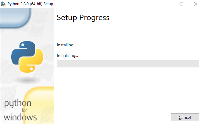 3. 다운받은 설치파일(python-3.8.0-amd64.exe)을 더블클릭하여 실행한다.