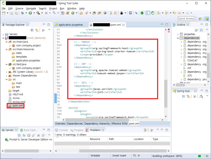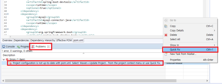 그리고 기존 라이브러리(jar)를 지우고 진행을 하는데 아래 오류가 발생했다.