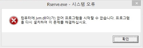 Rserve.exe 시스템 오류: jvm.dll이(가) 없어 프로그램을 시작할 수 없습니다