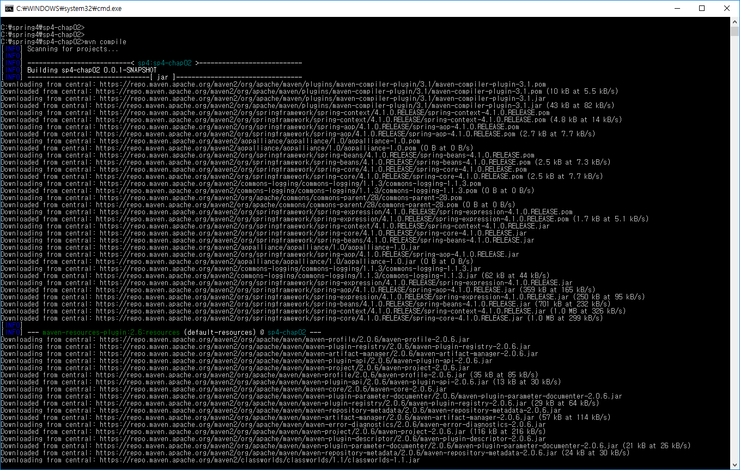 메이븐은 한 번 로컬 리포지토리에 다운받으면 그 다음부터는 원격 리포지토리에서 다운받지 않는다. (다시 mvn compile을 실행하면 이미 받았던 아티팩트는 건너뛴다.)