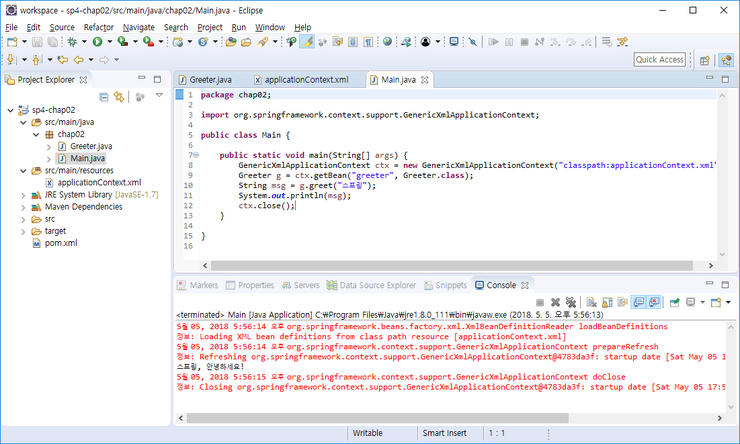 package chap02; import org.springframework.context.support.GenericXmlApplicationContext; public class Main { public static void main(String[] args) { } |