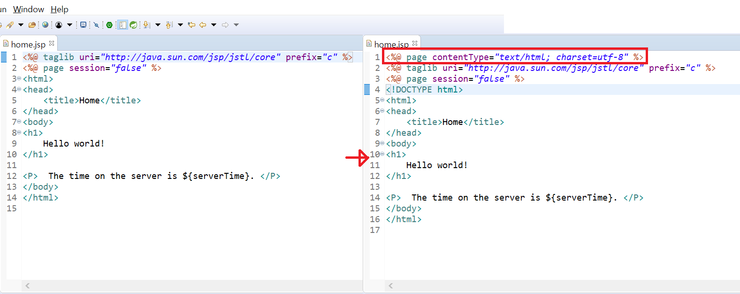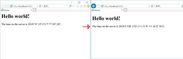 jsp 파일 상단에 <%@ page contentType=”text/html; charset=utf-8″ %> 를 추가한다.