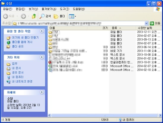“수당”이라는 폴더를 켠 상황이다. 보시다시피 윈도우 상단부에 “수당”이라고 적혀있다. 이게 캡션이다.