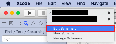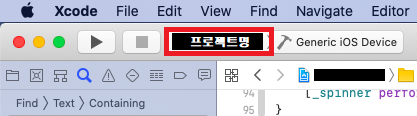 1. Xcode 상단의 [프로젝트명] 클릭한다. (Run 아이콘과 Stop 아이콘 우측에 위치함)